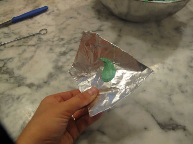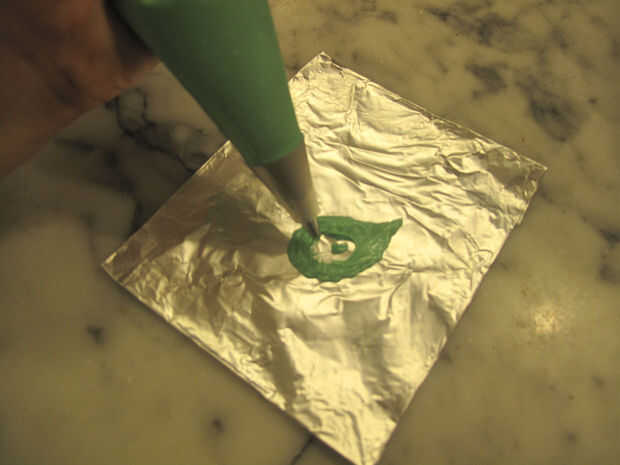 Para hacer la hoja que vas a necesitar verde murió chocolate blanco. Esto se puede comprar en un supermercado o una tienda de chocolate. Necesitará este chocolate del derretimiento del mismo modo que fundir el chocolate regular. Poner el chocolate verde en una manga pastelera, luego en papel de aluminio, tubo de la forma de una hoja. Doble la hoja ligeramente hacia adentro y colocar en el congelador.