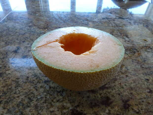 Sacar las semillas del melón, usted puede lanzar lejos a menos que quieras probar y crecer algunos más adelante...