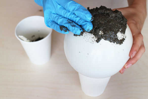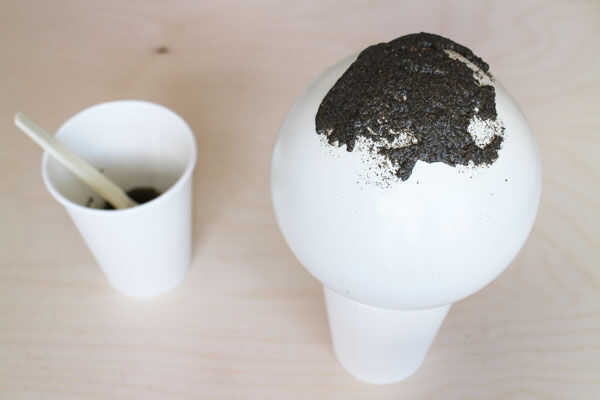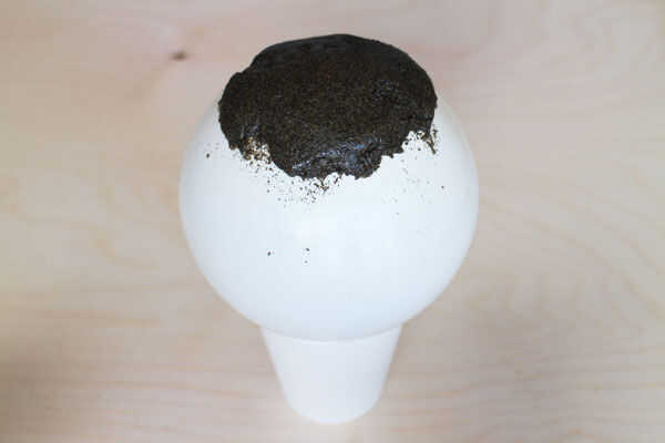 Modelo de la arena espuma alrededor de la superficie engrasada del balón. Con golpes ligeros puede modelar la espuma. También puede espolvorear un poco de arena en sus manos para que la espuma no se pega a las manos demasiado.