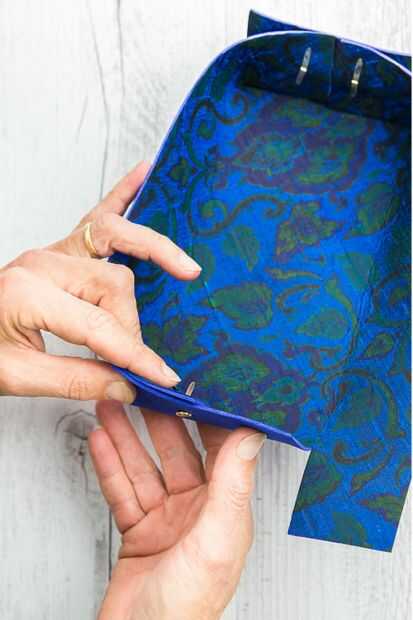 Montar la forma de la caja. Para la caja de forma rectangular, doblar solapas laterales en primera, luego panel central para arriba en ángulo recto, inserte el 2 clavitos en las dobles capas. O, para versión alternativa, doblar la solapa de panel centro primero, por lo que es perpendicular a la base, doblar que lo solapas, duplicación en la solapa de panel de centro. Inserte 2 clavitos en las dobles capas.