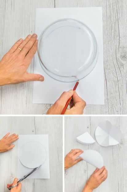 Tome un pedazo de papel y un plato redondo. Traza alrededor de él, cortar el círculo. Doblar el círculo en cuartos.