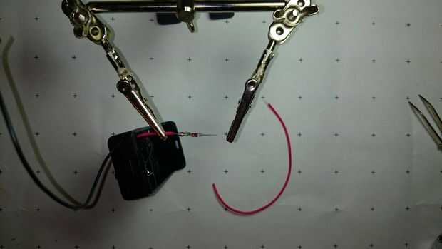 Abrazadera para diodo unsoldered final es entre las abrazaderas.