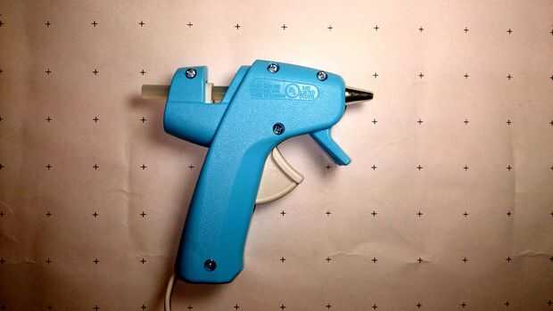 Inserte un palillo del pegamento hasta el tope por el orificio posterior de la pistola de pegamento caliente.