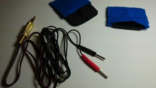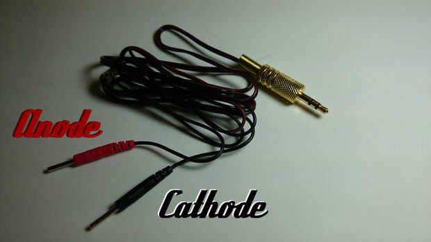 Aquí le damos el más básicos de colocación de electrodos de pinza. Lugares de electrodo se llaman también un montaje. Más puede ser encontrado aquí. El electrodo del ánodo (rojo) va en la cabeza de 2"(50mm) por encima de la sien derecha. El electrodo del cátodo (negro) va en el brazo izquierdo.