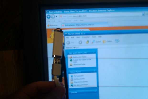 Para probar, conectado el extremo macho en puerto USB de mi computadora, y un flash barato entrar en el otro. Tenía la esperanza de capturar una imagen de la burbuja en la bandeja del sistema, pero lo mejor que agarró fue la ventana abierta mostrando el contenido de mi disco vacío. Estaba un poco preocupada de que el cable más largo puede provocar una caída de tensión (y estoy seguro de que en los muy largos puede/podrá), así que cambié mi medidor de ohmios para ajuste de voltaje DC. El exterior clavijas en un conector USB con corriente el (pines 1 y 4), así que toca mis contactos de meter a estos 2 y leer 5 voltios. ¡ Un éxito!