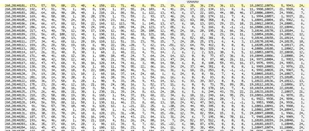 He descargado un archivo con, entre otros, el número de horas de sol por día en 2014. Además, tengo un archivo con los tiempos exactos de atardecer y amanecer, otra vez por día en 2014. Necesaria una pequeña programación para leer los archivos, calcular el número de horas de luz al día y combinar los dos.