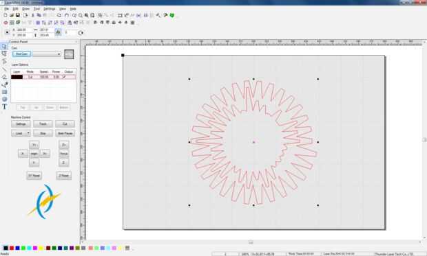 El cortador del laser viene con una aplicación (LaserGrav) en el que puede dibujar algo y tener el cortador del laser corte hacia fuera, o grabamos. La aplicación también permite importar archivos creados por otras aplicaciones (por lo general vector formatos como DXF y CDR).