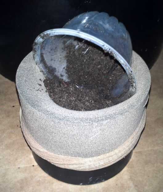 Utilice la tapa o amarre la siembra para que la mezcla de compost se sumerja en el cubo de agua burbujeante.