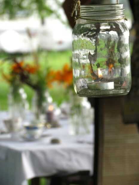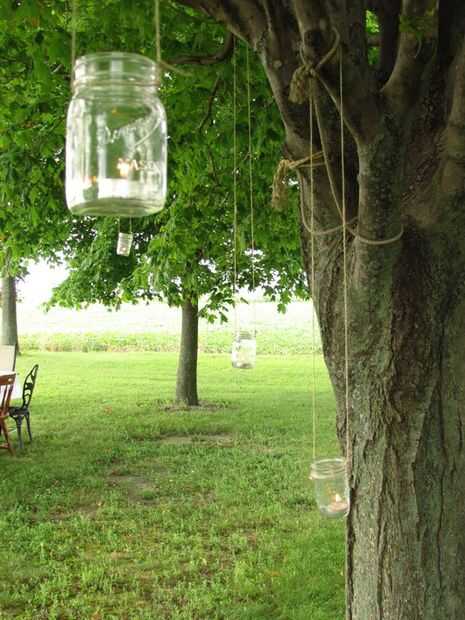 Para decorar tarros de masón colgado de los árboles con velas en ellos. Las fotos fueron tomadas antes de que todos llegaron, pero como se puso más oscuro se podía ver el resplandor mucho más y veía realmente hermosas.
