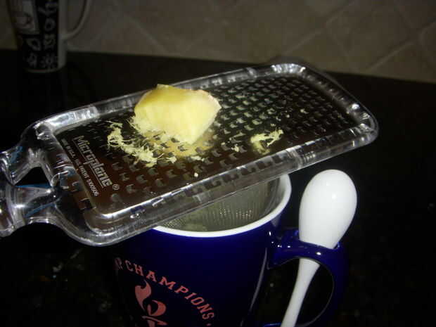 tarta shreding/rallar la raíz de jengibre. Añadir tanto o tan poco como usted desea