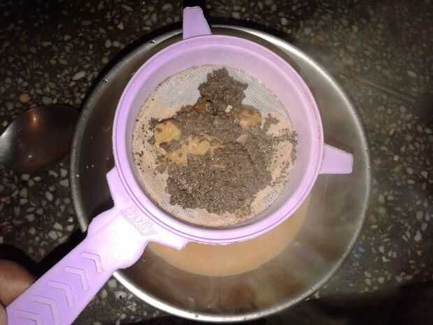 El té con la malla del filtro y tomar en taza, añadir azúcar (según su requisito), removemos bien y ya está listo para beber.