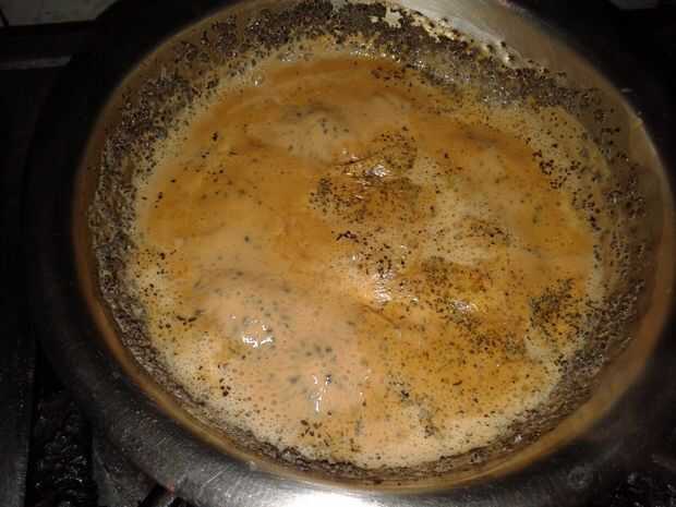 Después se hierve bien y se convierte en color marrón oscuro tal como se muestra en la foto, tomar de la llama.