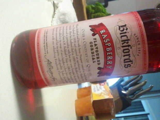 2. una buena calidad de cordial o jarabe de fruta - de cualquier sabor - utilicé frambuesa, evidentemente.