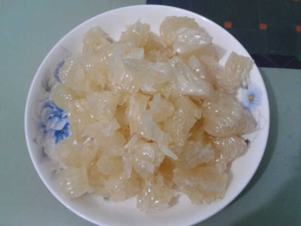 A continuación, Pele la piel blanca, la carne a la izquierda. Si no eres un gran fan de amargo, asegúrese de que quita la piel blanca totalmente, ya que es la parte más amarga.