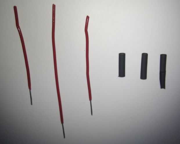 Comience con dos pedazos de calor tubería del encogimiento, la longitud depende de ti realmente, pero creo que unos 10-15 mm o 1/2" es un montón, en el mismo corte de tiempo una pieza alrededor de dos veces la longitud.