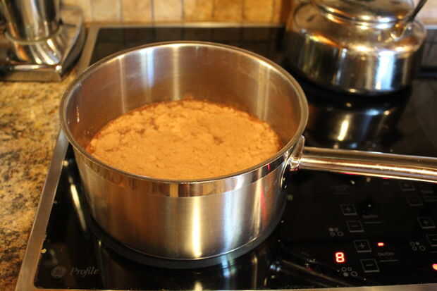 Calentar la leche a fuego medio alto en la cacerola y añada la mezcla de chocolate caliente. Bate como el calienta leche para asegurarse de que el chocolate se mezcla uniformemente. No permita que la leche de la burbuja.