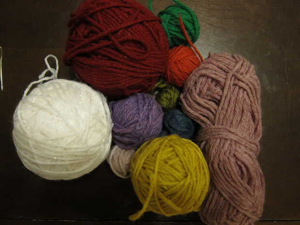 Desechos de lana/DK/Aran peso hilado (8 IPM) en una variedad de colores brillantes y negro.
