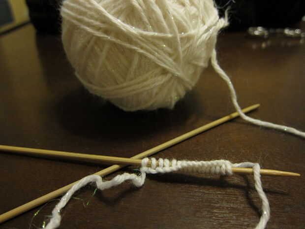 Fundido en 17 puntos en las agujas. Deje la cola por lo menos 8 pulgadas de largo.