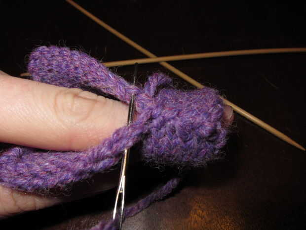 Utilizando la aguja de tapicería, coser los extremos (excepto uno) en.
