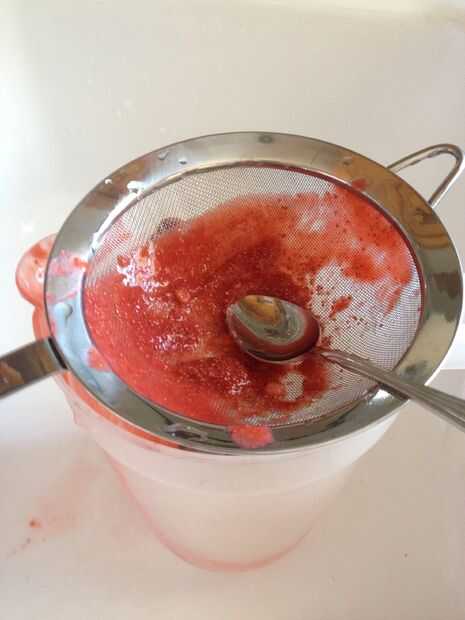 Colar la mezcla de fresa porque no me gusta las semillas de mi té, pero no tienes que hacer este paso.