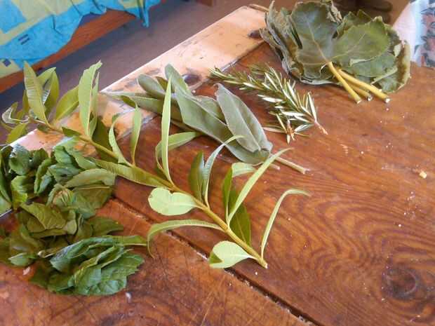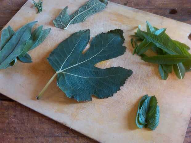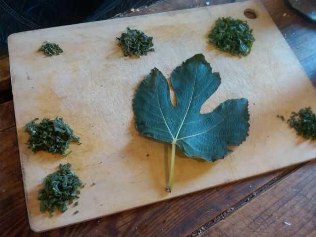Foto 1... Encontró una higuera en el valle por lo que utiliza esas hojas entonces agarraron el resto de las hierbas del jardín.