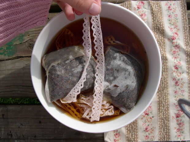 Cuando esté satisfecho con el color, sacar todo el material de la taza y correr bajo el agua fría, hasta que el agua salga limpia.