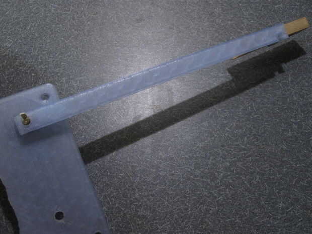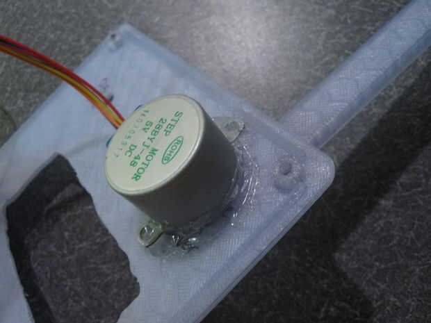 Una vez que los componentes internos han sido cableados y conectado, deslice el remojo del brazo hacia el motor de paso y una pinza en el extremo del brazo del pegamento.