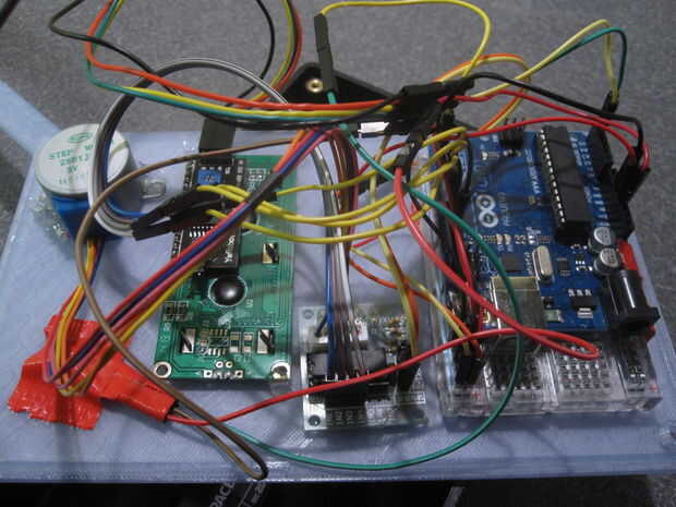 La colocación de los dispositivos es en última instancia depende de ti, pero he encontrado que el brazo de remojo es mejor posición en una de las esquinas superiores de la caja. Usted tendrá que cortar un agujero ~ 0,2" para el motor y el receptor de infrarrojos y un 1" x2.9 "rectángulo de la pantalla. Todo puede ser caliente-pegados en la parte posterior de la tapa, si lo desea.