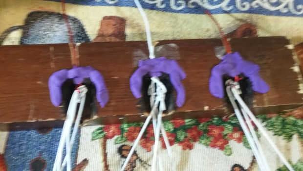 Mi última creación en el hilado es esta corona de bolas adorable hilado, hecha con el hilo de mi stash de lana.Soy un acaparador de hilado de la recuperación y recientemente cayó en amor con la creación de guirnaldas utilizando hilo para disminuir mi