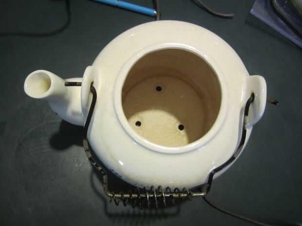 1. use las brocas cerámica perforar un agujero en el centro de cada taza y el platillo y los tres agujeros en la tetera.
