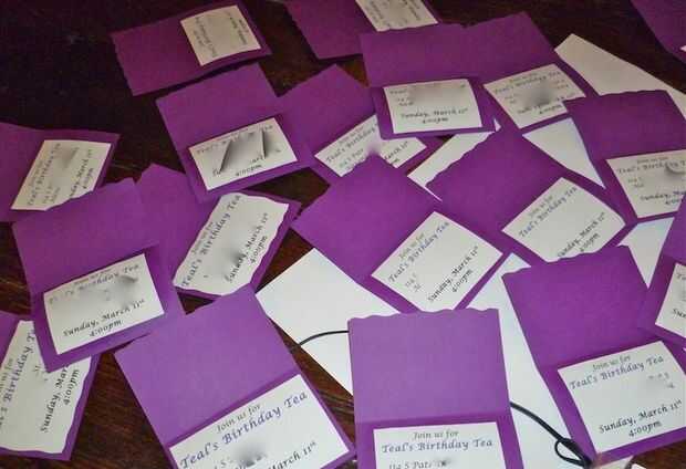 7. en el interior de la tarjeta elija para imprimir la invitación real con día, fecha, hora, etc. desde mi ordenador y pegarlo en la tarjeta. Esto debería haber sido más rápido que el cursivo todo pero tuve un tiempo difícil no ser TOC sobre el aspecto de la invitación impresa y terminó siendo la parte más desperdiciador de tiempo.