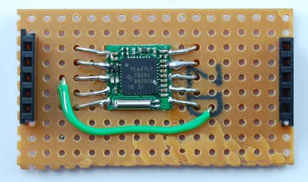 Se trata de una LDR Breakout Junta hecha por mí. Esto consiguió un 10 resistencia k integrado así que sólo tienes que proporcionar alimentación en el pin vcc y gnd y la señal conectar al Arduino. Hice esto en una placa perforada pero también puede ha