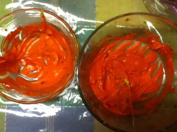 9: 1 cucharada taza 3 helar la taza / taza de 1 cucharada 5 glaseado rojo naranja
