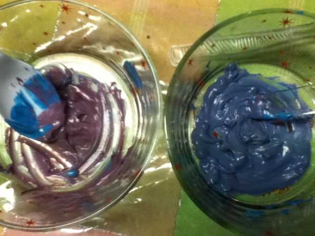 4: 2 cucharadas 3 taza helar la taza / 2 cucharadas taza de 1 glaseado púrpura