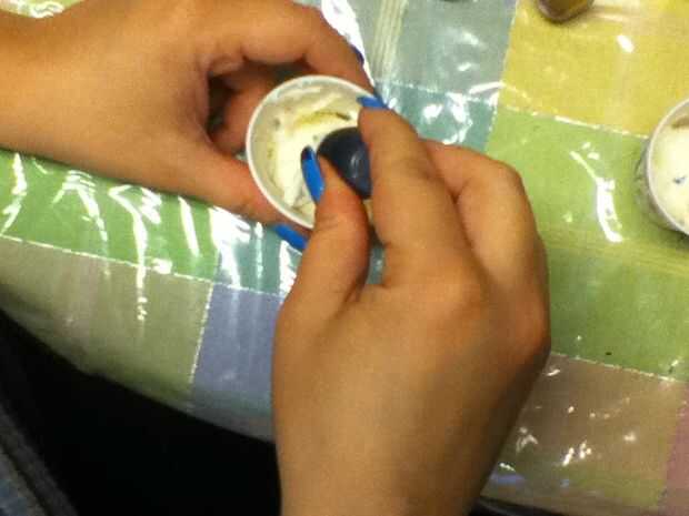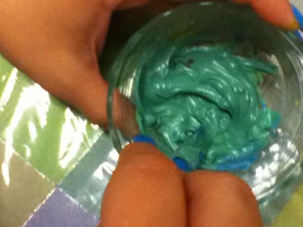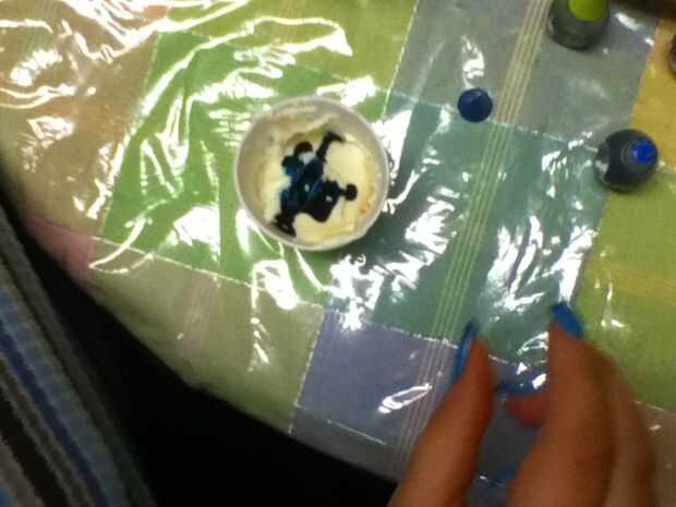 1: 7 cucharadas helar la taza / 14 gotas de azul azul