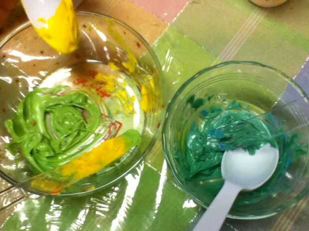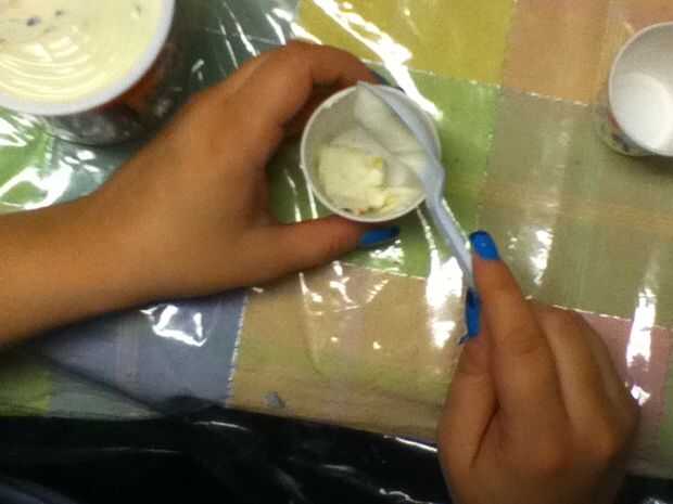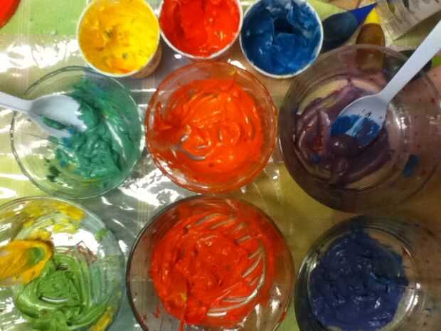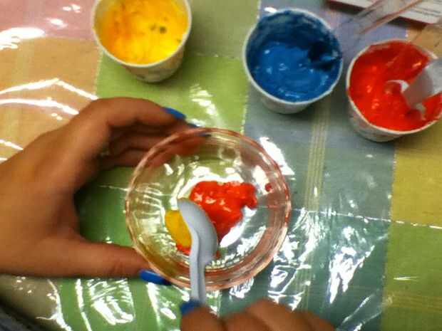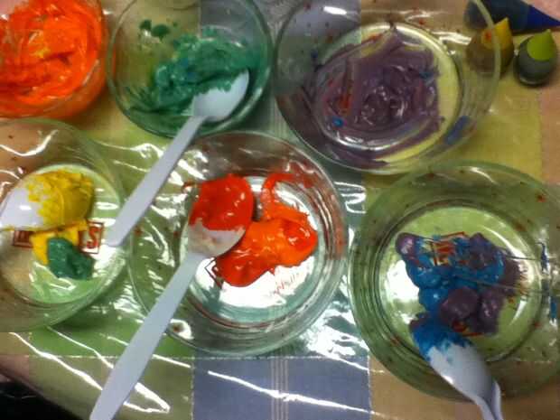 ** Nota para la ible solo hice tres colores terciarios debido a un número limitado de tazas y utensilios de plástico en el hogar en este momento **