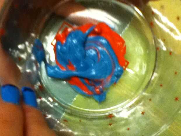 3: 7 cucharadas helar la taza / 14 gotas rojo