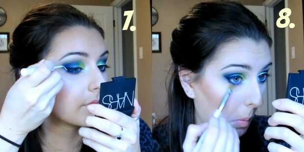 7. aquí estoy tomando un trazador de líneas líquido blanco impermeable. Suavemente que estoy añadiendo una línea en la esquina externa del ojo.