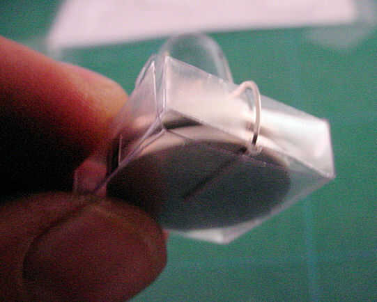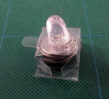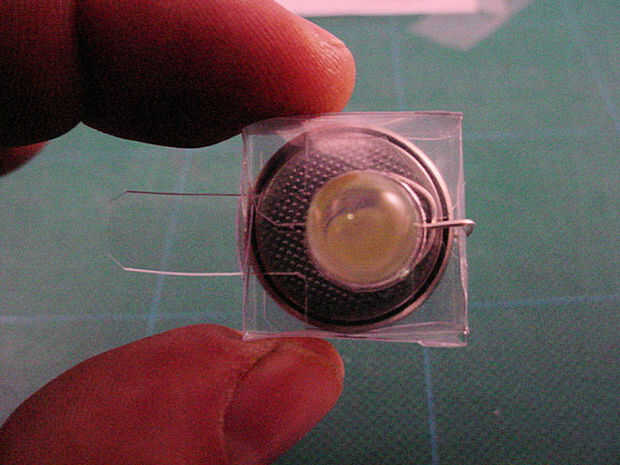 Asegúrese de que las aletas son entre de la pierna los LEDs y la parte superior de la caja y el plástico (que actúa como un interruptor) es entre las piernas y las baterías.