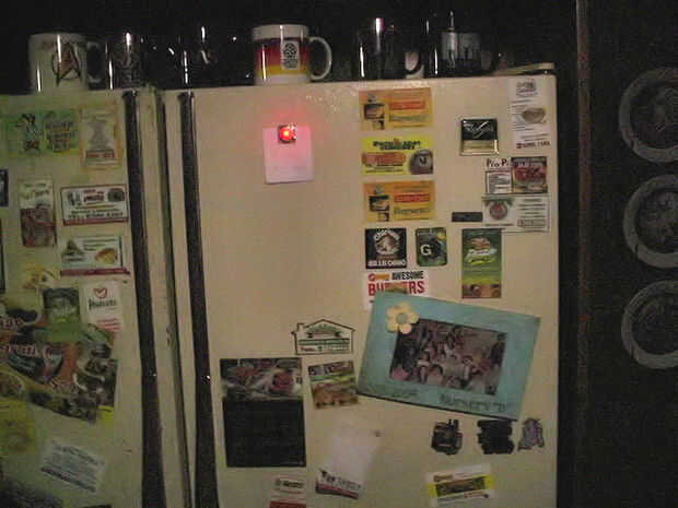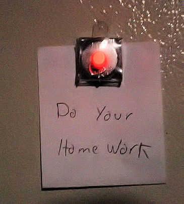 b) un 5 mm intermitente rojo led, con imán en la parte inferior, con una nota en la nevera.