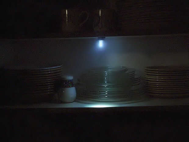 un) un blanco de 10 mm led, con velcro en la parte inferior, unida a un cajón de la cocina,