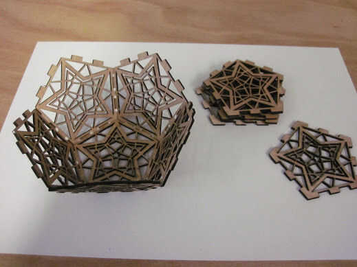 Existen cuatro tipos diferentes: uno con las esquinas incursionadas (abajo), uno con todas las esquinas extrudered (superior, do no pegamento que espigas para tener esta pieza extraíble para insertar la luz) y dos anillos de 5 piezas (una esquina inferior extruido anillo, anillo superior sacada dos esquinas).