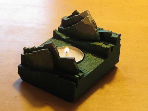Una manera simple de convertir una pieza de madera de desecho en un diorama de orografía pequeño pero acogedor. Mientras que es probablemente más fácil de hacer con una sierra de mesa, puede utilizar el principio básico con otras herramientas también.