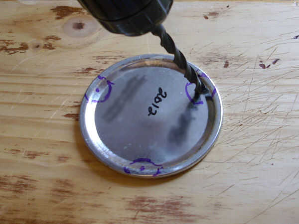 Haga agujeros directamente en el centro de cada uno de los círculos trazados en el paso anterior.