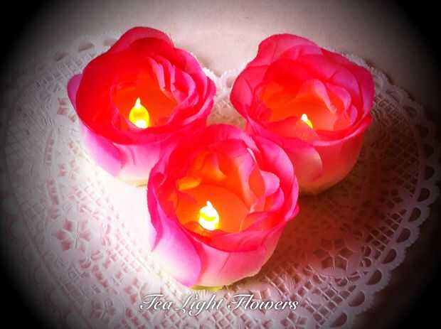 Desmontar las flores y cortar los pétalos. Coloque una pequeña cantidad de pegamento en la base de la luz del té y empezar a pegar los pétalos a él. Utilizar los pétalos más pequeños primero y luego los mayores alternando alrededor de la base.