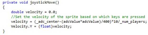 La adaptación más importante es el control del murciélago por los valores de ADC en lugar del teclado. Puesto que la tarjeta de adquisición de datos viene con una biblioteca .NET esto no fue una tarea muy difícil. Algunas funciones adicionales se agregan para modificar la velocidad del bat en función del valor de ADC leído. La no linealidad del valor del resistor es linearizar tomando el valor de adc al cuadrado. Tolerancia en las resistencias es manejada por un valor de adc_center que se puede establecer desde la interfaz de usuario.