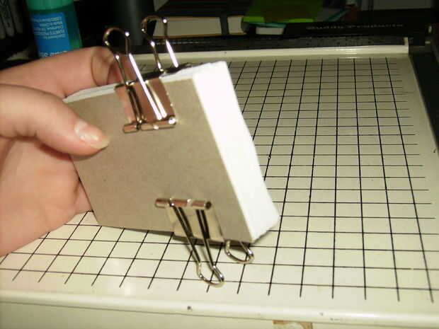 Utilice binder clips o bandas de caucho para mantener las páginas y el forro en su lugar.