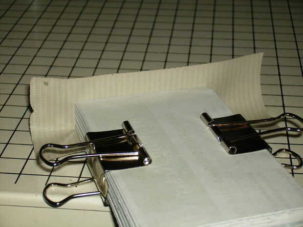 Si usted está haciendo un bloc de notas que es más gruesa que el ancho de la cinta use tiras varios colocadas lado a lado