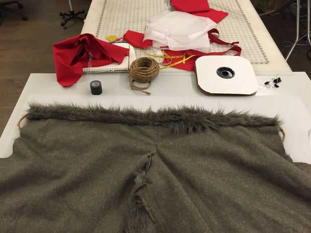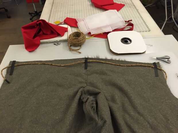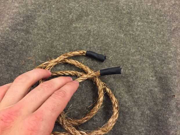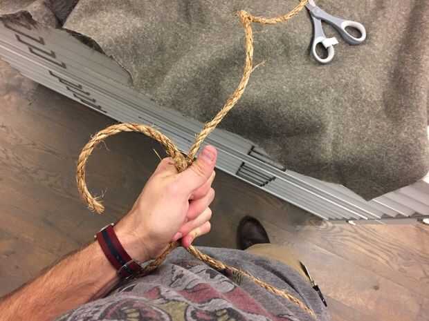Cinta guita hasta arriba de cortos así que se queda puesto. Luego doblar la piel aproximadamente una pulgada sobre guita para crear un canal. Se trata de su lazo.