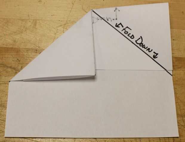 3. Doble la esquina derecha hacia abajo y arruga, como si estás haciendo un avión de papel.